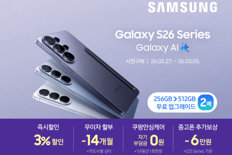 삼성 갤럭시 S26 사전예약이 곧 종료됩니다.