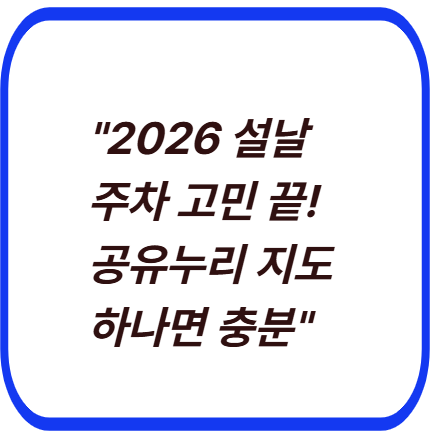 2026년 설날, 미리 확인한 주차 정보 하나가 여러분의 지갑과 기분을 지켜줍니다. 알려드린 공유누리와 지자체 공지를 통해 스마트하게 주차하시고, 마음까지 넉넉한 설 명절 보내시길 바랍니다!